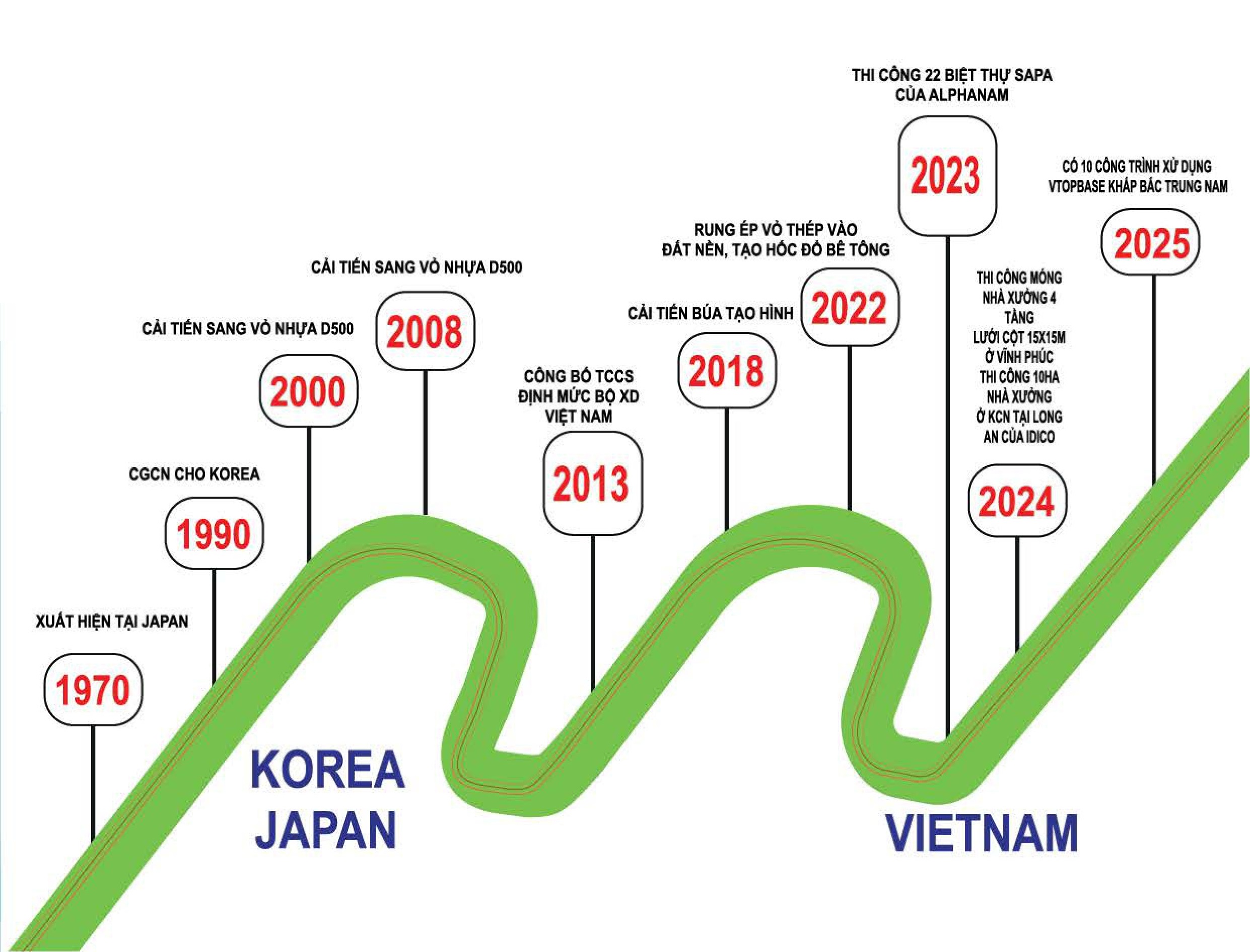 Quá trình hình thành và phát triễn công nghệ gia cố nền móng Top Base đến VTopbase được tóm tắt trong sơ đồ sau: